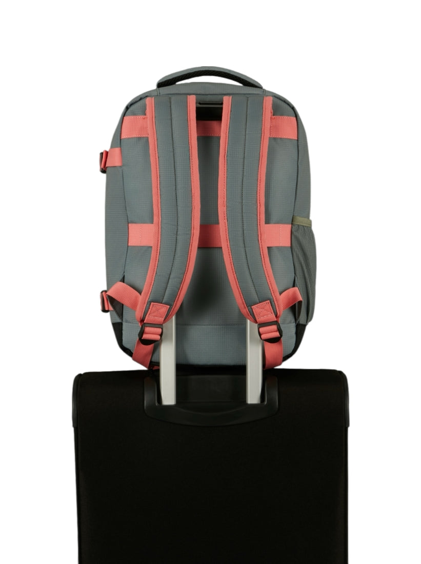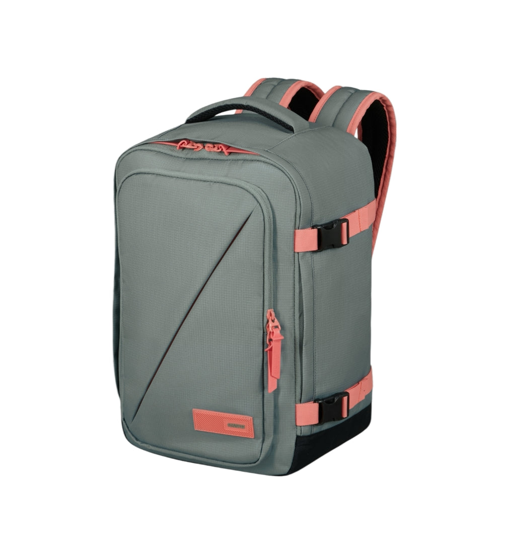American Tourister Take2cabin reppu mahtuu koneissa edellä istuvan penkin alle. Siinä kulkee vaivattomasti pienet matkatavarat ja voit hypätä reppu selässäsi niin lentokoneeseen kuin muihinkin kulkuvälineisiin. Repun pehmeä kangas on valmistettu 100% kierrätetyistä muovipulloista. Reppu kulkee myös kädessä tai matkalaukun aisassa. Olkahihnaa laukussa ei ole.