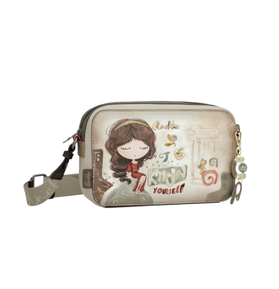 Anekke Muse kokoelma vie matkalle taiteen, viisauden ja inspiraation alkulähteille. Paluu juurille kulkee antiikin Kreikan tunnelmissa, mikä näkyy klassisissa yksityiskohdissa, veistoksellisissa muodoissa ja hienostuneessa estetiikassa, tuoden esiin Anekken luovan ja ajattoman puolen. Tyylikäs ja iso olkalaukku kuljettaa inspiraation mukanasi kaikkialle, minne päiväsi sinut vie.