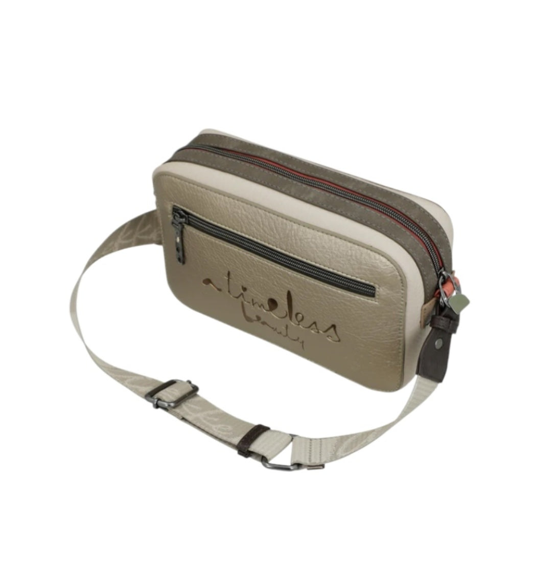 Laukun tilavassa pääosiossa on lisäksi avotasku sekä vetoketjutasku. Laukun takana on vielä vetoketjutasku. Laukun kankainen olkahihna on irroitettava ja säädettävissä, joten voit mukauttaa sen juuri sinulle sopivaksi.