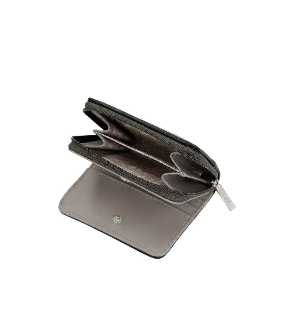 Tyylikäs ja käytännöllinen Anekke Shopia pieni lompakko kuljettaa inspiraation mukanasi, minne ikinä menetkin. Lompakon korttiosio suljetaan nepparilla. Sisäpuolelta löytyy neljä korttipaikkaa sekä yksi läpikuultava paikka esimerkiksi henkilökortille. Päädyssä on avotasku seteleille. Vetoketjulla suljettava kolikkotasku on jaettu kahteen osioon, mikä helpottaa kolikoiden ja pienten tavaroiden järjestämistä.