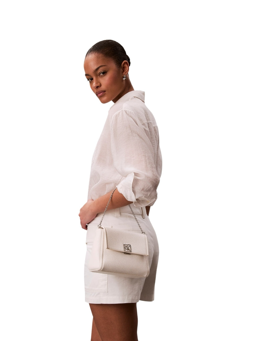 Calvin Klein Emblem Pebble valkoinen pehmeä olkalaukku