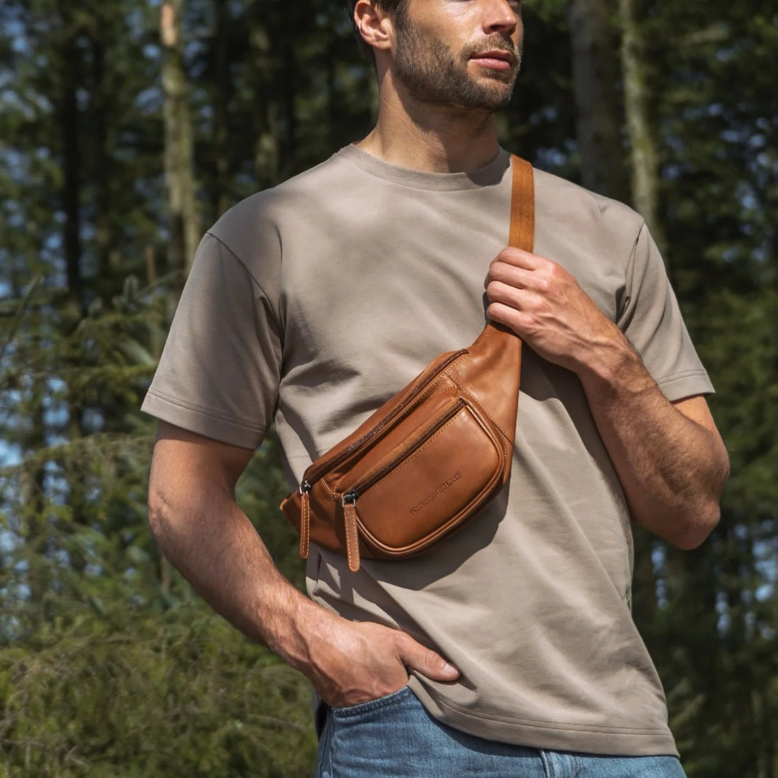 Konjakinruskea nahkainen vyölaukku Jack - Chesterfield