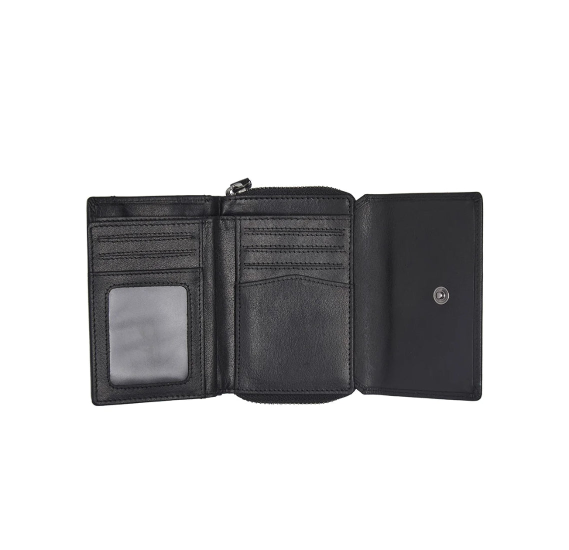 Lompakko aukeaa nepparillisella läpällä, jonka alla on yksi avotasku. Lompakon sisäpuolella on yhteensä 10 korttipaikkaa joista 1 on ikkunallinen, sekä 5 avotaskua, joista yhdessä on ikkuna. Lisäksi tilava setelitasku.