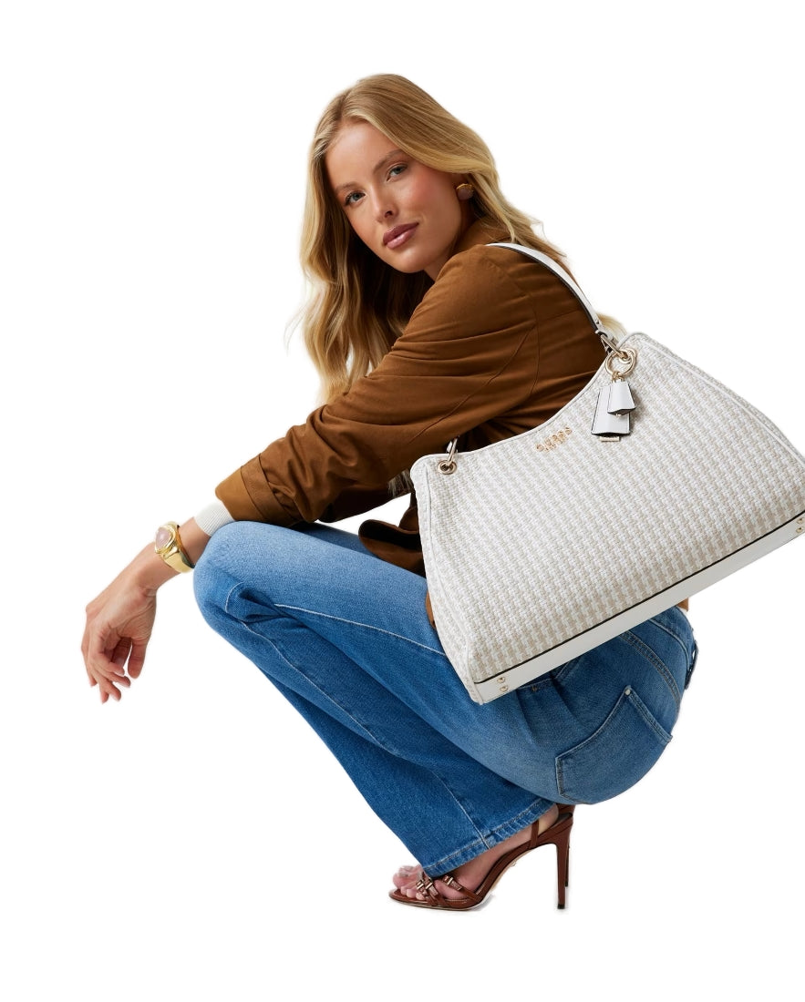 Guess Mirema olkalaukku on kaunis ja näyttävä valinta, joka hurmaa pehmeällä, punotulla pinnallaan. Tyylikäs muotoilu tekee siitä täydellisen kumppanin arkeen, ja tilavuutensa ansiosta se kulkee kätevästi mukana myös matkalla.