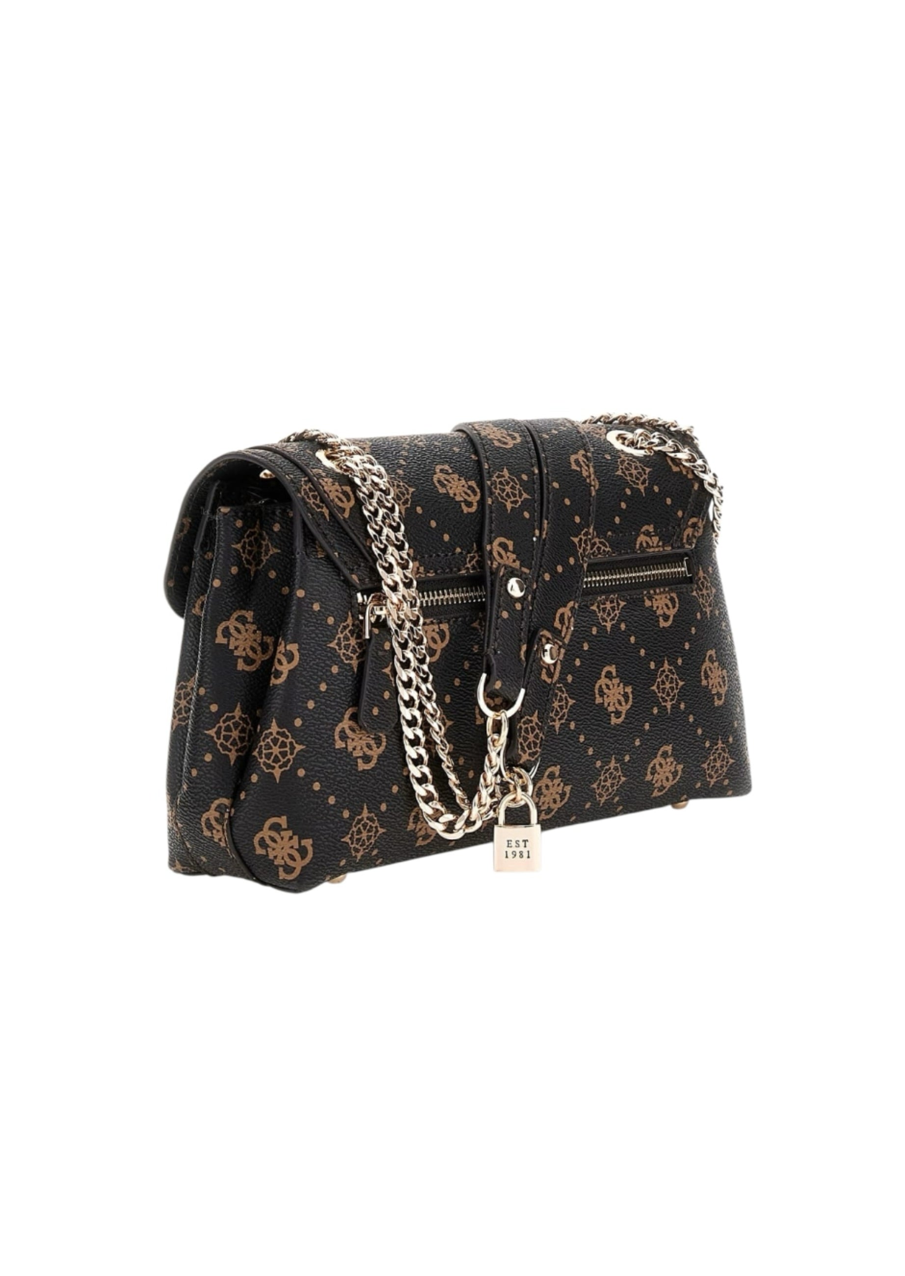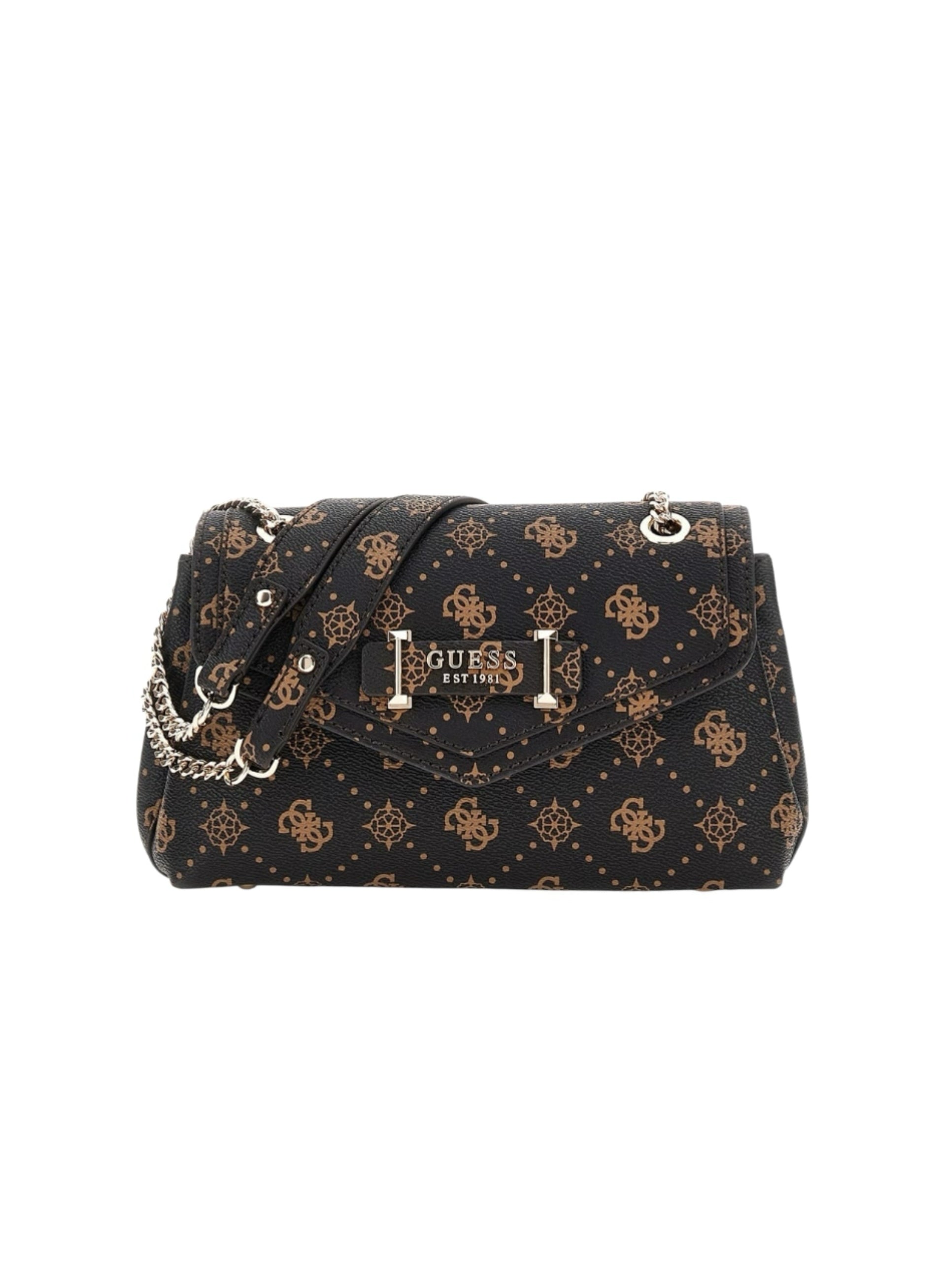 Guess Silia on logokuvioitu olkalaukku, joka sopii moneen asuun sekä arkeen ja juhlaan. Laukku aukeaa magneettinepparilla varustetulla läpällä, jonka alta paljastuu tilava kolmiosainen pääosio. Keskimmäinen osio on vetoketjutasku. Etummaisessa osiossa on lisäksi 3 korttipaikkaa ja takimmaisessa vetoketjutasku. Takana on vielä yksi vetoketjutasku. Laukussa on kaksi kantokahvaa, jotka ovat osittain kultaista ketjua.