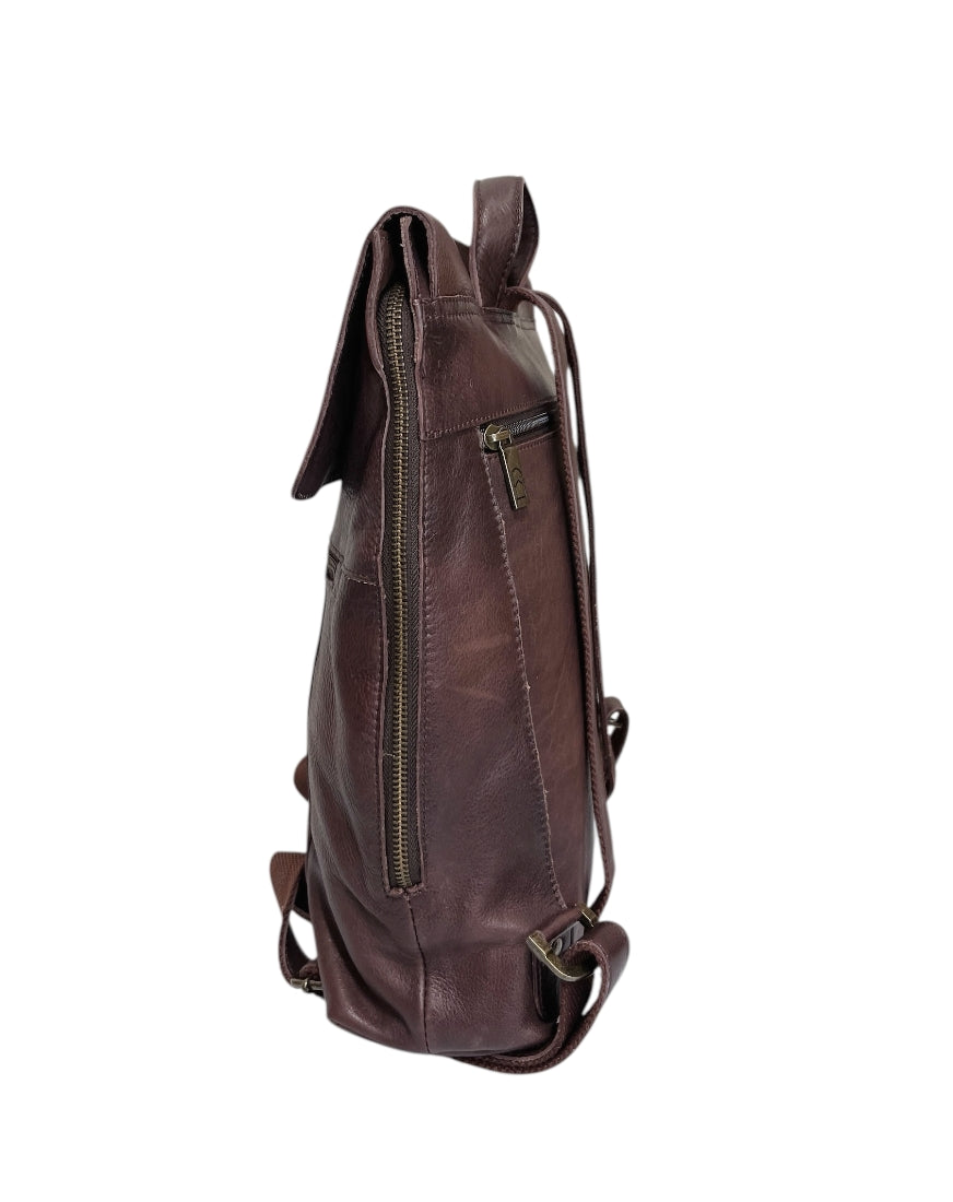 Nahkainen Sajacon reppu on tilava ja toimiva. Reppu suljetaan läpällä, jonka alla on vetoketju. Repun sisällä on vetoketjutasku ja 2 avotaskua. Repun etu- ja takapuolella on vetoketjutaskut.