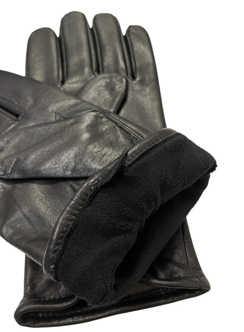 Miesten yksinkertaiset mustat nahkahanskat. Hanskoissa on ohut vuori, mikä tekee niistä kevyen tuntuiset kädessä.