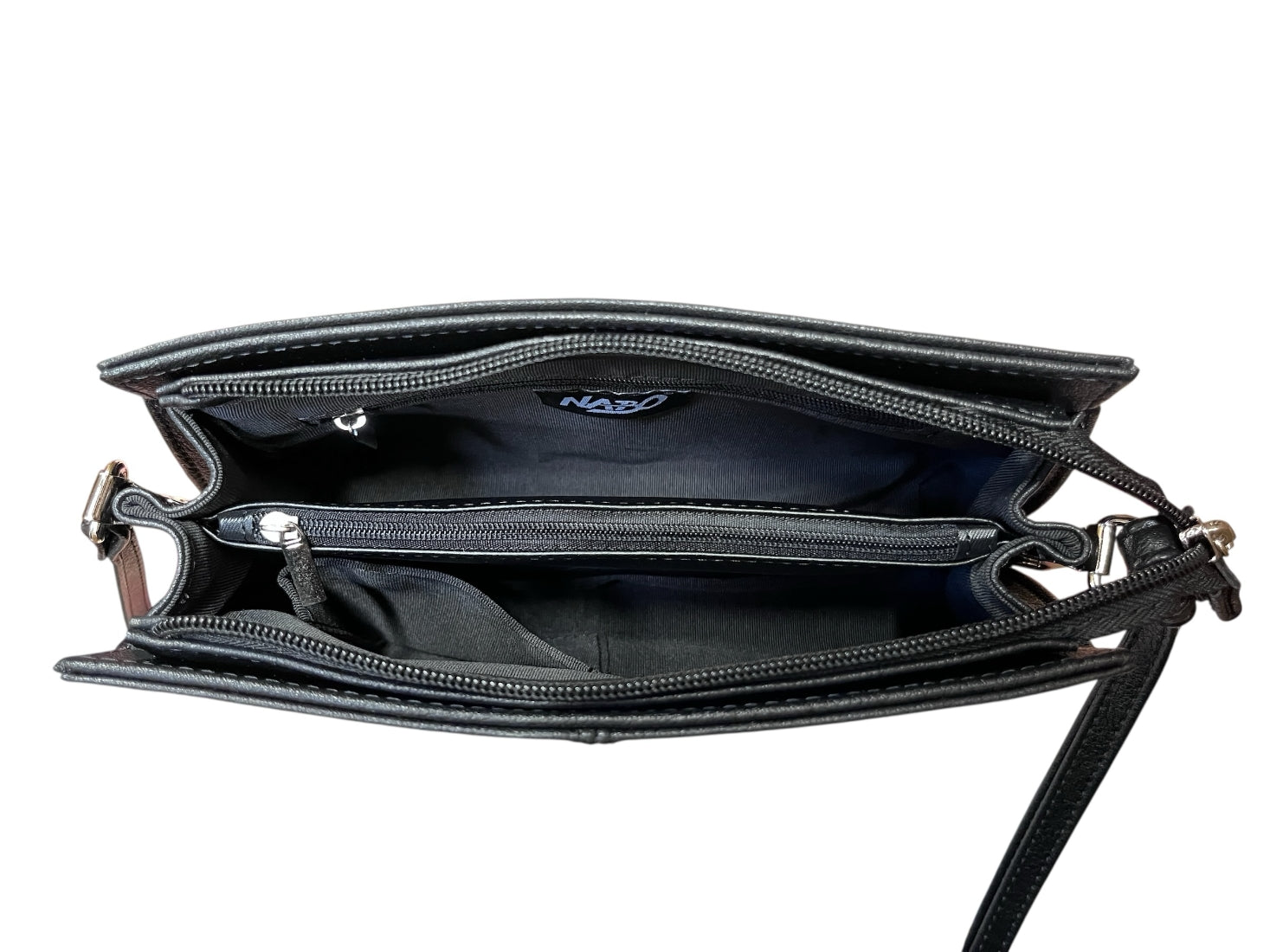 Nabon Suomessa suunniteltu pieni laukku toimii arkisena laukkuna että juhlalaukkuna.  Laadukas jäljitelmänahka näyttää upealta ja kestää käyttöä.
