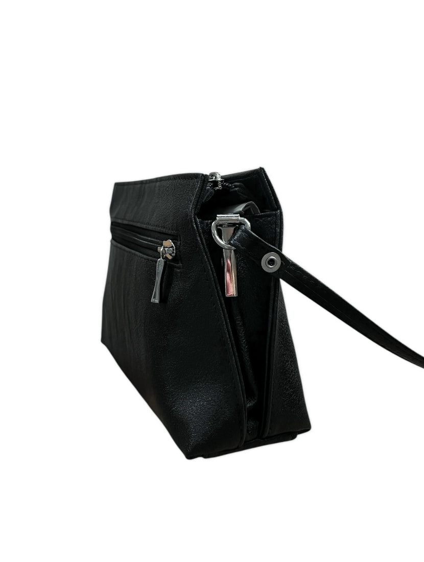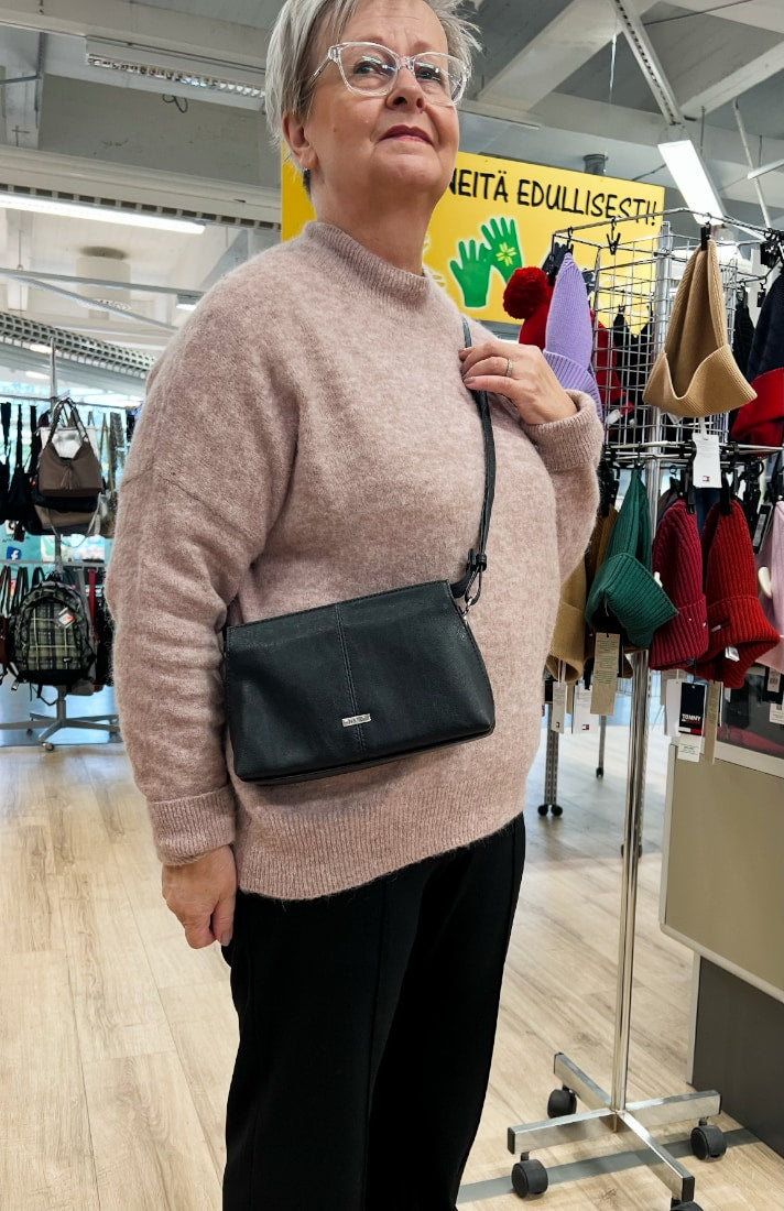 Laukussa on juuri sopivasti tilaa kaikille tärkeille tavaroille. Pääosio on jaettu  vetoketjutaskulla kahteen osioon. Pääosiossa on pieni avotasku sekä toinen vetoketjutasku, jotka pitävät pienimmät tavarat järjestyksessä. Pitkän säädettävän hihnan ansiosta voit kantaa laukkua mukavasti olalla.
