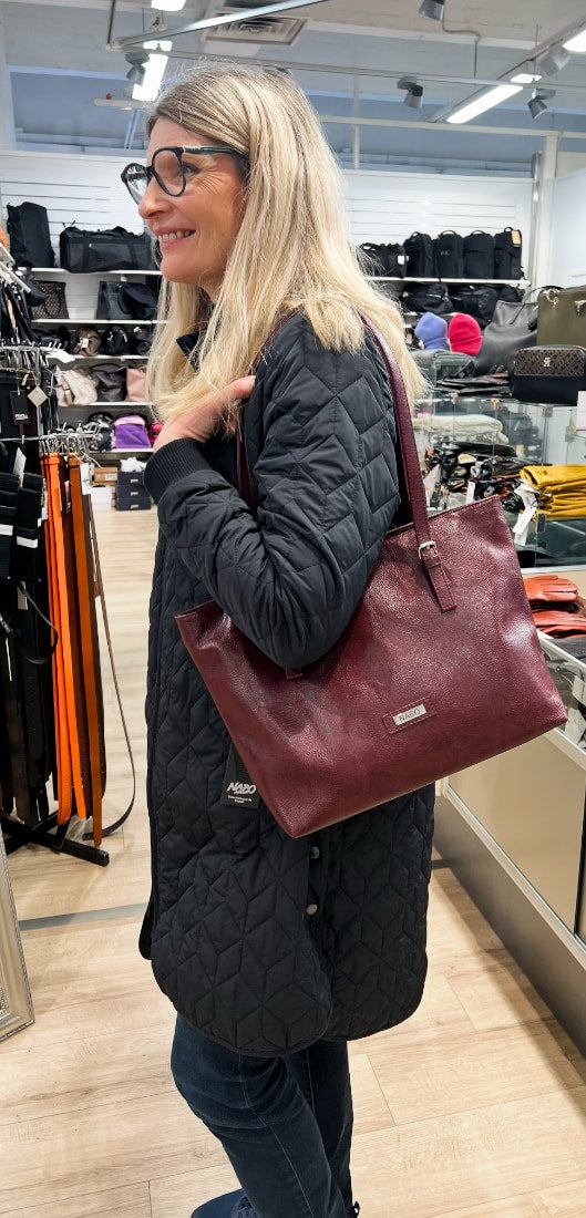 Nabon Tote on tilava Suomessa suunniteltu olkalaukku, joka on valmistettu laadukkaasta nahkajäljitelmästä. Laukussa on runsaasti tilaa, mikä tekee siitä ihanteellisen valinnan jos tarvitset paljon tavaraa mukaan. Pitkien olkahihnojen ansiosta voit kantaa laukkua mukavasti olallasi tai kädessäsi.