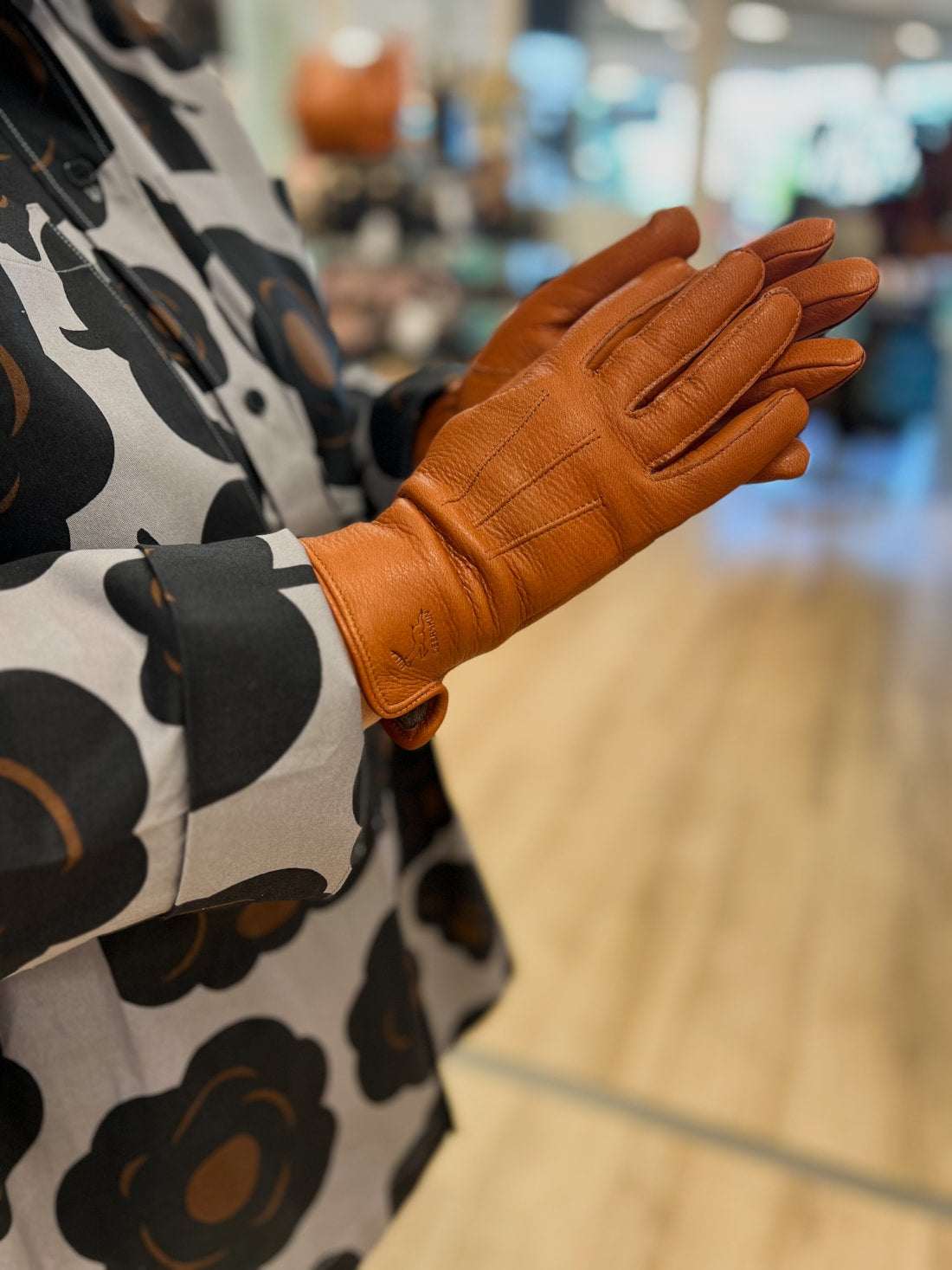 Naisten hanskat konjakinruskeat peurannahkaa