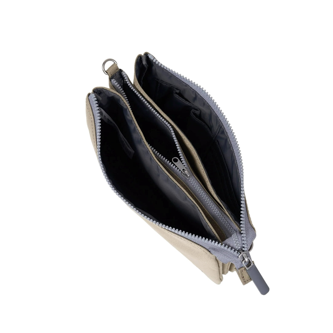Laukku aukeaa vetoketjulla, paljastaen kaksi tilavaa osiota. Näiden osioiden välissä on lisäksi vetoketjullinen tasku ja kaksi avotaskua, jotka auttavat pitämään tavarat järjestyksessä. Takimmaisessa osiossa on myös pieni avotasku puhelimelle sekä kolme korttipaikkaa, jotka tekevät laukusta entistä kätevämmän.