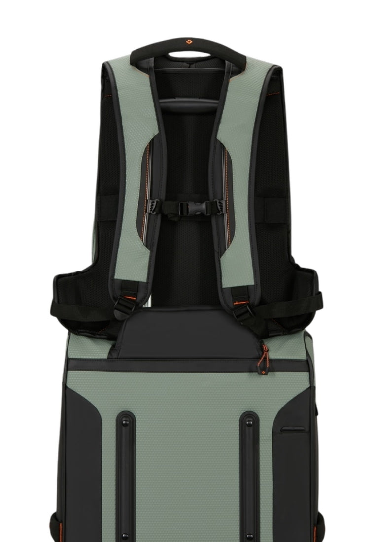 Repun takana on kantoa helpottavat ergonomiset olkaimet, jotka on varustettu säädettävällä rintaremmillä. Repusta löytyy myös kantokahva. Repun saa kiinni matkalaukun vetoaisaan.
