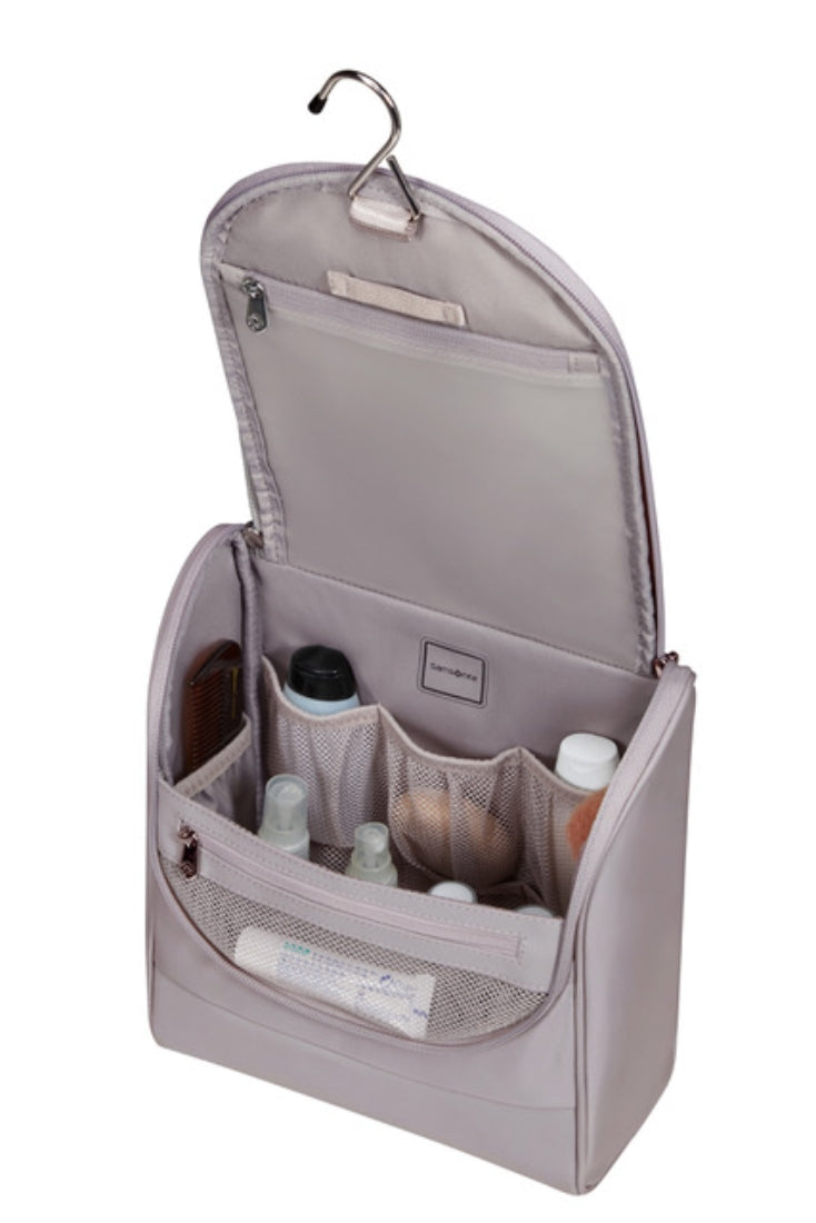 Samsonite Move Journal on toiletlaukku,  jonka saat roikkumaan laukussa mukana olevasta pienestä koukusta. Laukku aukeaa hyvin niin että tavarat on helppo löytää.