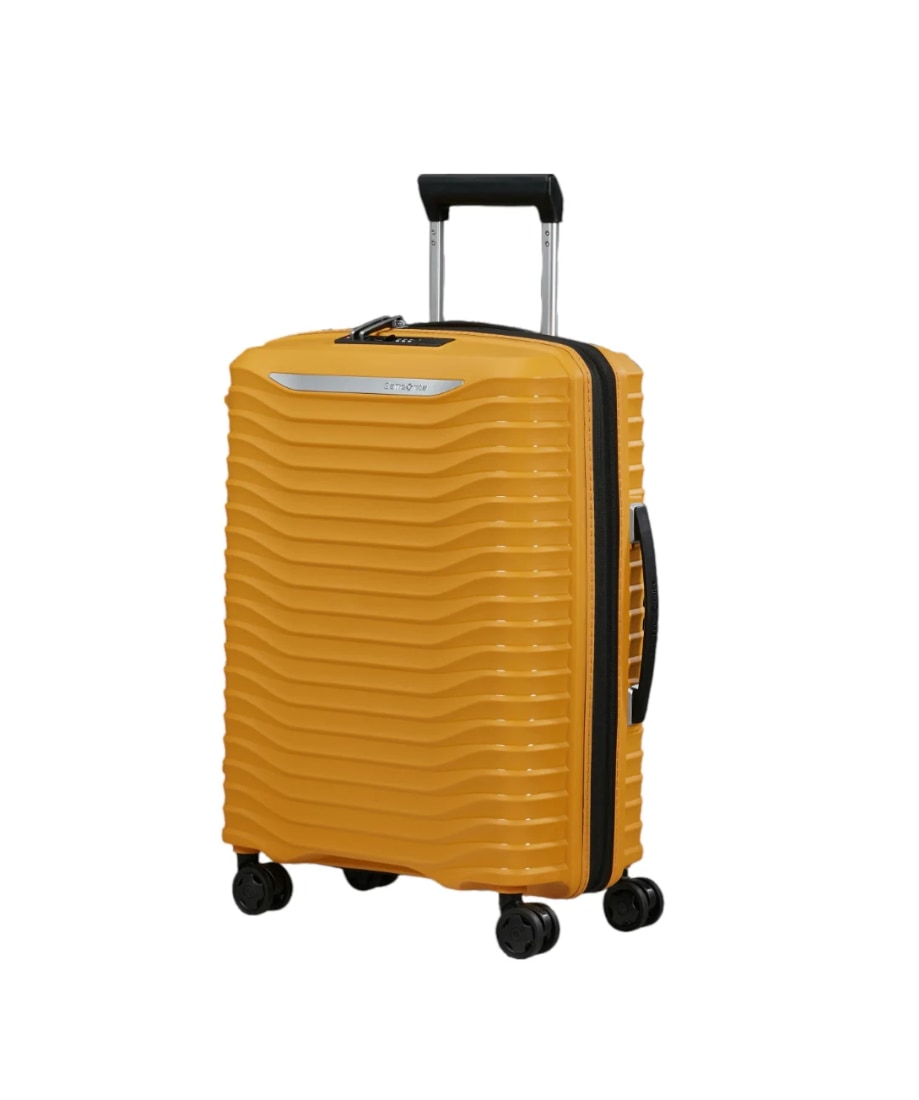 Samsonite Upscape on polypropeenista valmistettu kevyt ja kestävä lentolaukku, jonka valmistuksessa on käytetty 17 kierrätettyä muovipulloa.