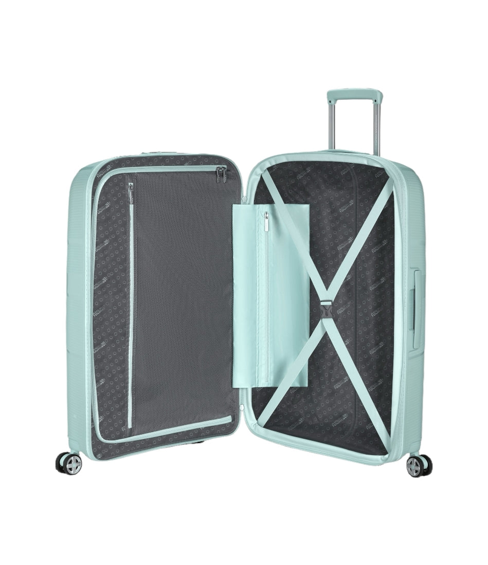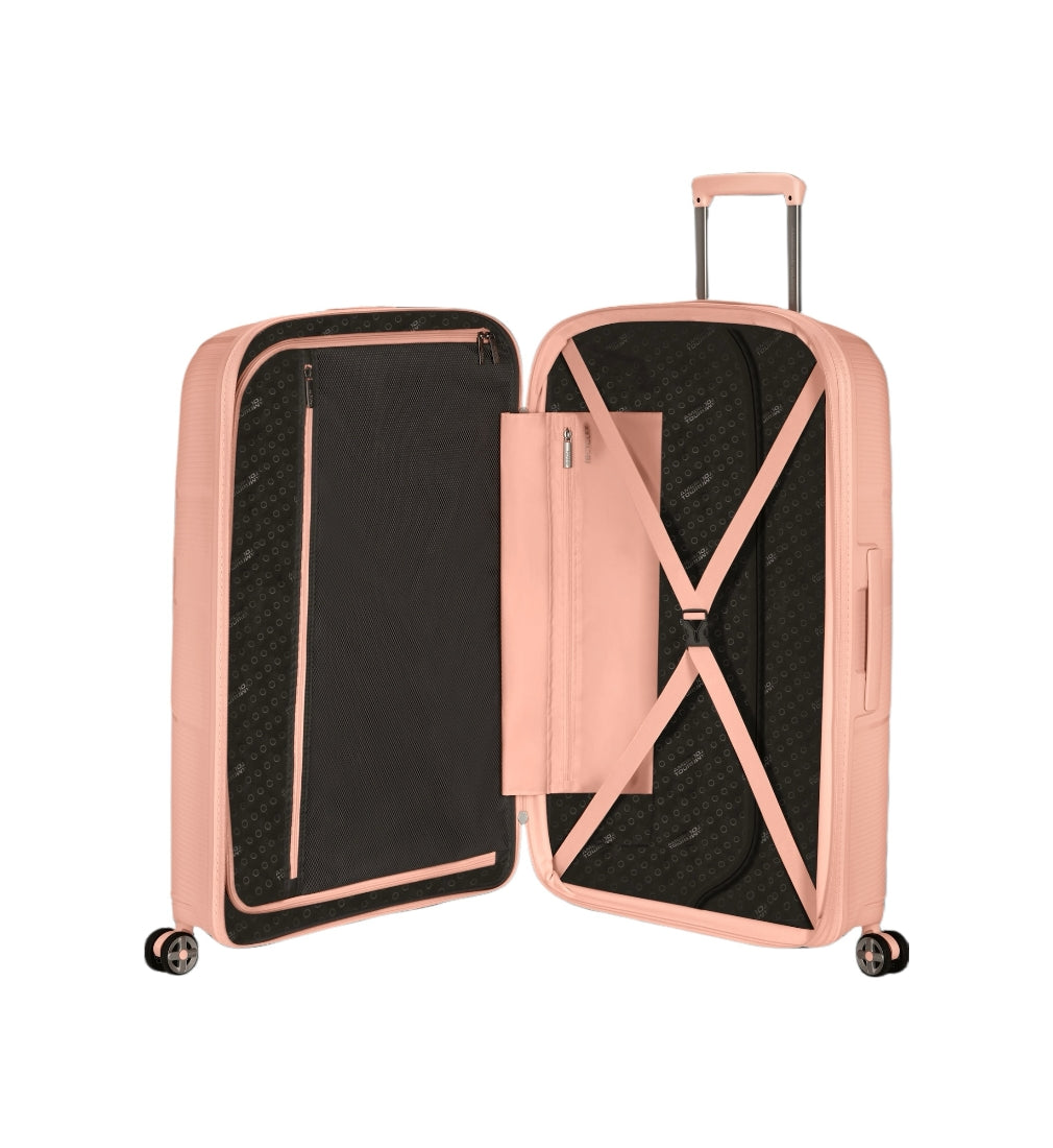 Matkalaukku avautuu vetoketjulla keskeltä ja molemmin puolin on tilaa tavaroille. Toisella puolella on remmit tavaroiden kiinnittämiseen ja toisella puolella vetoketjulla avattava välilevy. Lisäksi laukun sisällä on kaksi vetoketjullista taskua pienille tavaroille. Matkalaukussa on hyvät tuplapyörät joten sen liikuttaminen on vaivatonta! Laukussa on lisäksi kiinteä TSA-lukko, laajennettavuus ja kätevät pakkaamistoiminnot.