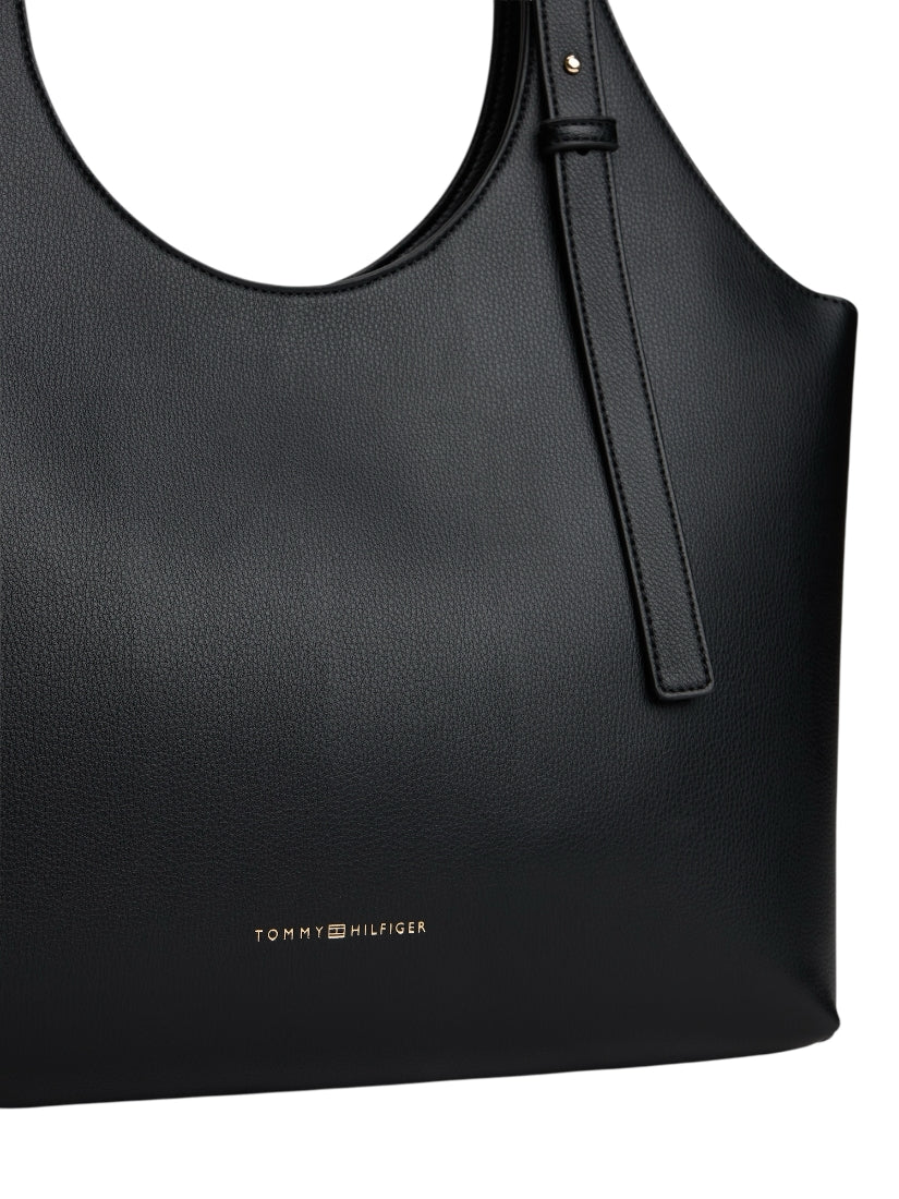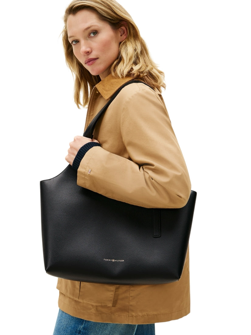 Tommy Hilfiger Logo Tote on ajaton ja tyylikäs laukku, jossa on pitkät hieman säädettävät kantokahvat. Laukku on hyvä valinta kaupungille jos tarvitset enemmän tavaraa mukaan.