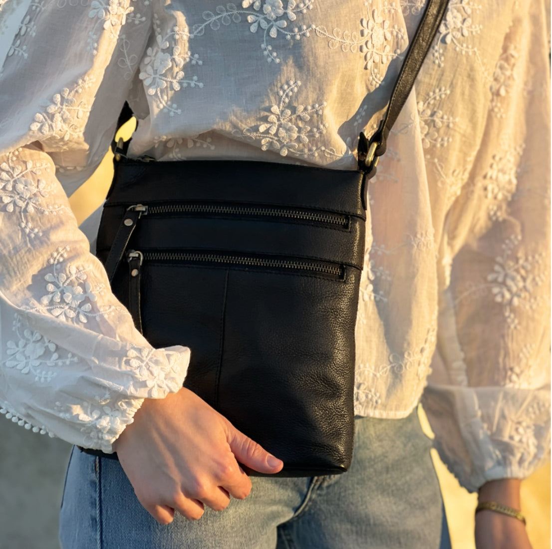Treats Alicia musta nahkainen olkalaukku